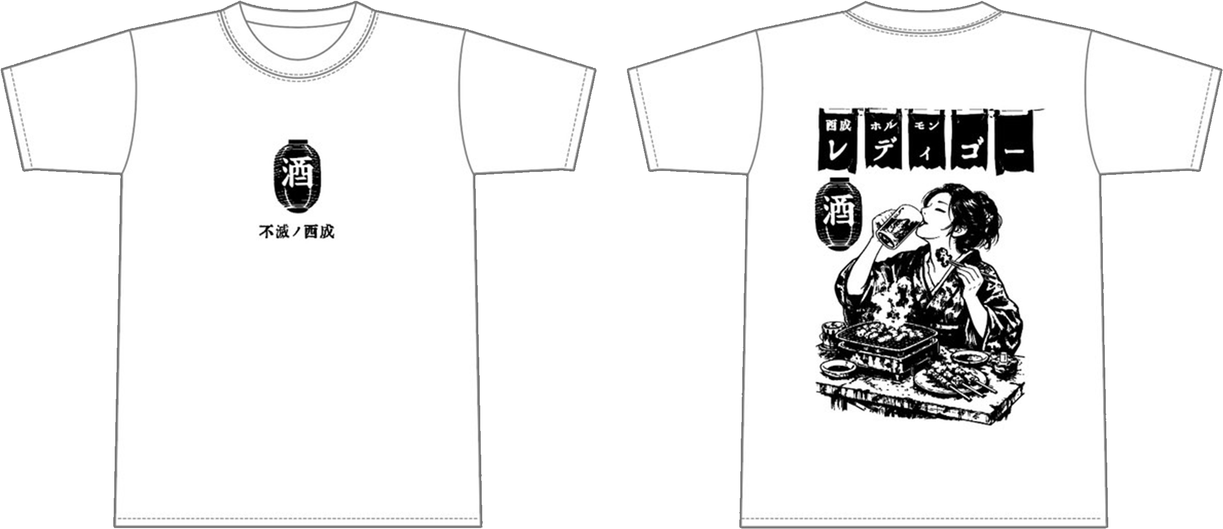 西成ホルモンレディゴーの新Tシャツです。 カラー ホワイト サイズ M.L.XL M L XL 着丈(後) 69 73 77 身幅 52 55 58 肩幅 46 50 54 袖丈 20 22 24